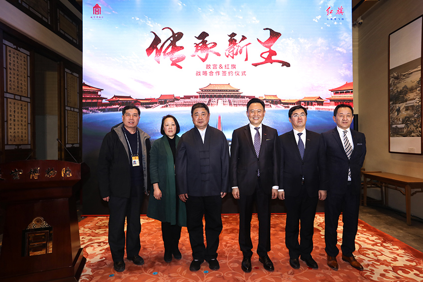 2019年1月29日,中国一汽红旗品牌与故宫正式达成战略合作。双方在故宫建福宫举行了合作签约仪式。中国一汽董事长、党委书记徐留平和故宫博物院院长单霁翔代表双方签署了战略合作协议。双方将秉承“传承与创新”的宗旨,融合东方美学与现代创新,从文化、公益、教育等多个层面传承和推广中国文化,弘扬文化自信。