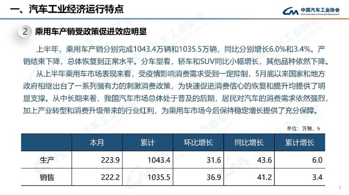 7月11日,中国汽车工业协会公布的数据显示,汽车行业已经走出4月份的最低谷,6月产销表现更是好于历史同期。最新数据显示,6月份,我国汽车产销分别完成249.9万辆和250.2万辆,同比分别增长28.2%和23.8%。其中乘用车产销223.9万辆和222.2万辆,同比分别增长43.6%和41.2%。